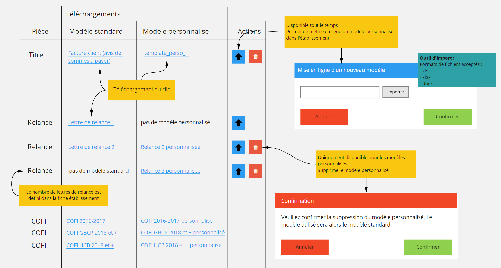 Ainsi, si plusieurs établissements doivent disposer d’un même modèle, il convient de le téléverser sur chaque établissement.