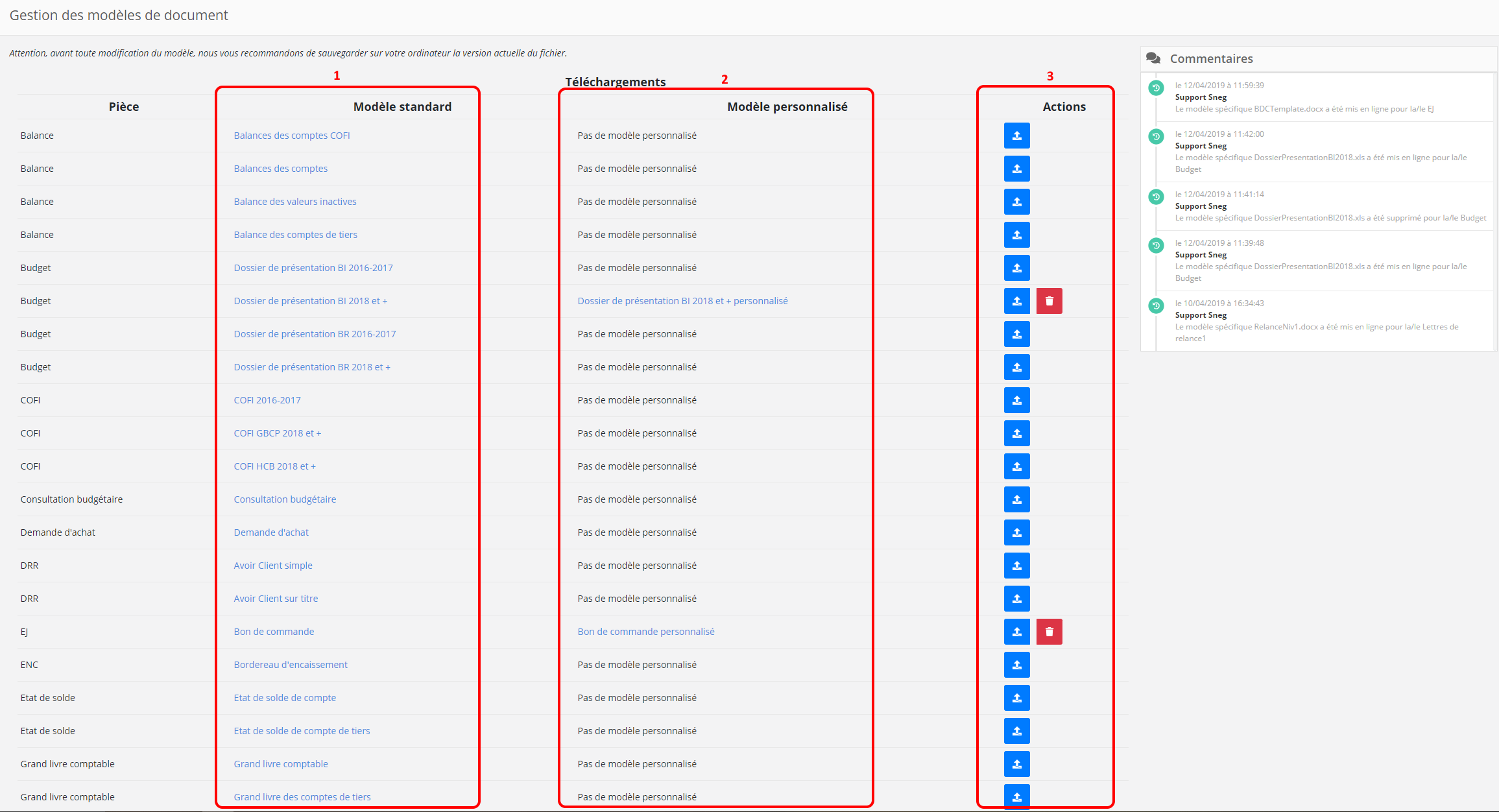 Cette fonctionnalité permet de gérer en autonomie les modèles utilisés lors des impressions PDF et Excel, des différents objets de gestion de l’application (EJ, DP, Avis de somme à payer, Relances etc…).