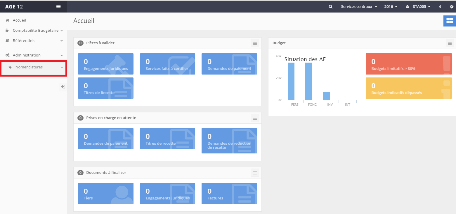 Les nomenclatures se gèrent dans le menu “Nomenclatures”