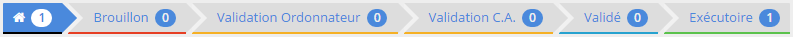 Le WorkFlow, qui correspond à la ligne de vie des pièces, permet de filtrer les pièces en fonction de leur état. Un simple clic sur une étape du WorkFlow restreint la liste du tableau aux seules pièces de cette étape.