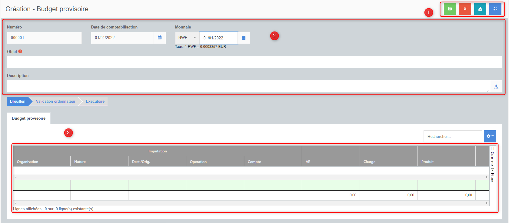 Le Budget provisoire est à saisir à partir du menu “Comptabilité budgétaire” > “Accueil Budget”