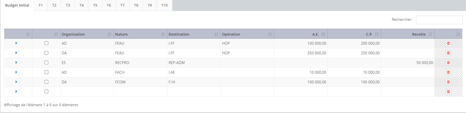 - Les différents axes budgétaires doivent être paramétrés (nature, destinations/origines, analytique…).