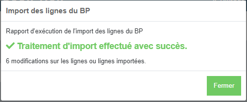 Cliquer sur Fermer pour mettre à jour l’affichage des lignes dans le tableau du BI :
