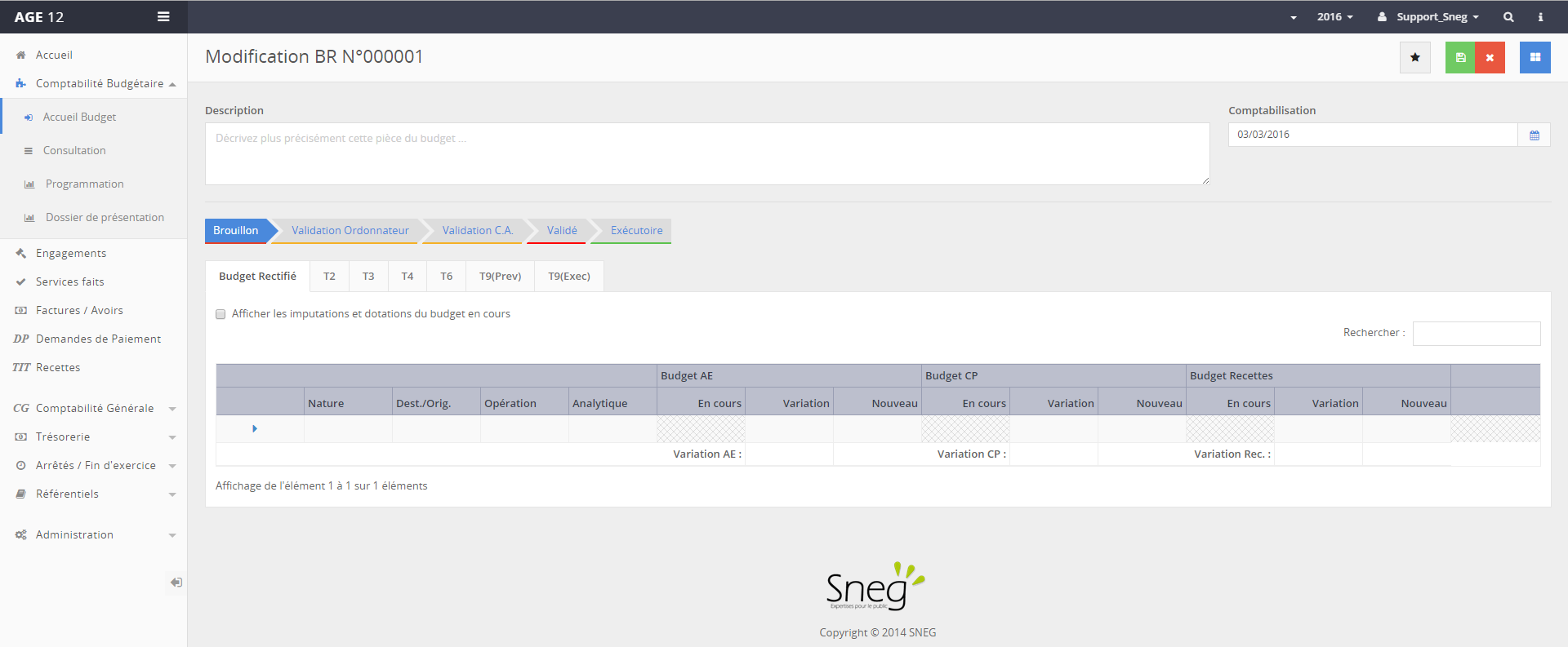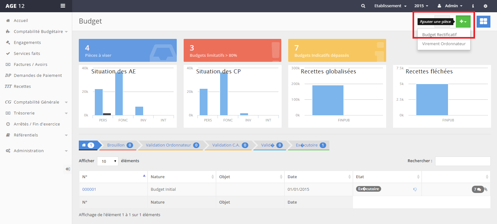 Le budget rectificatif se gère dans le menu “Comptabilité Budgétaire” >” Saisie”