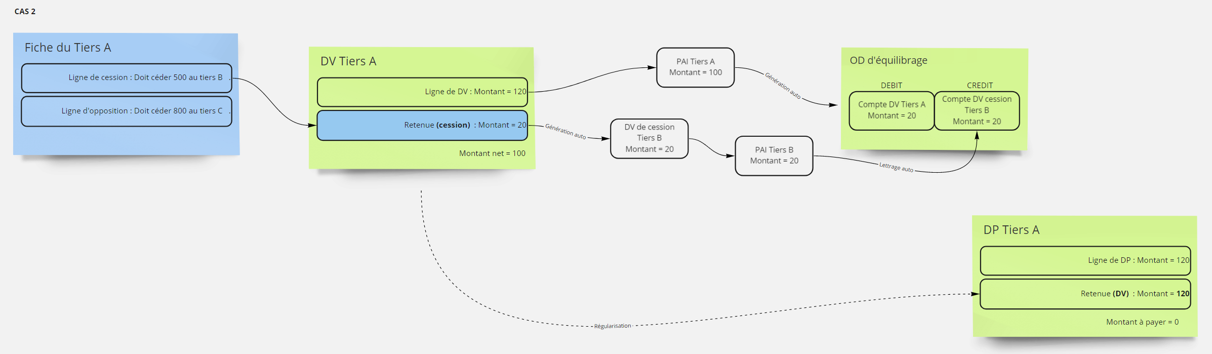 CAS 2, liquidation d’une cession/opposition dans une DV, puis régularisation dans une DP :