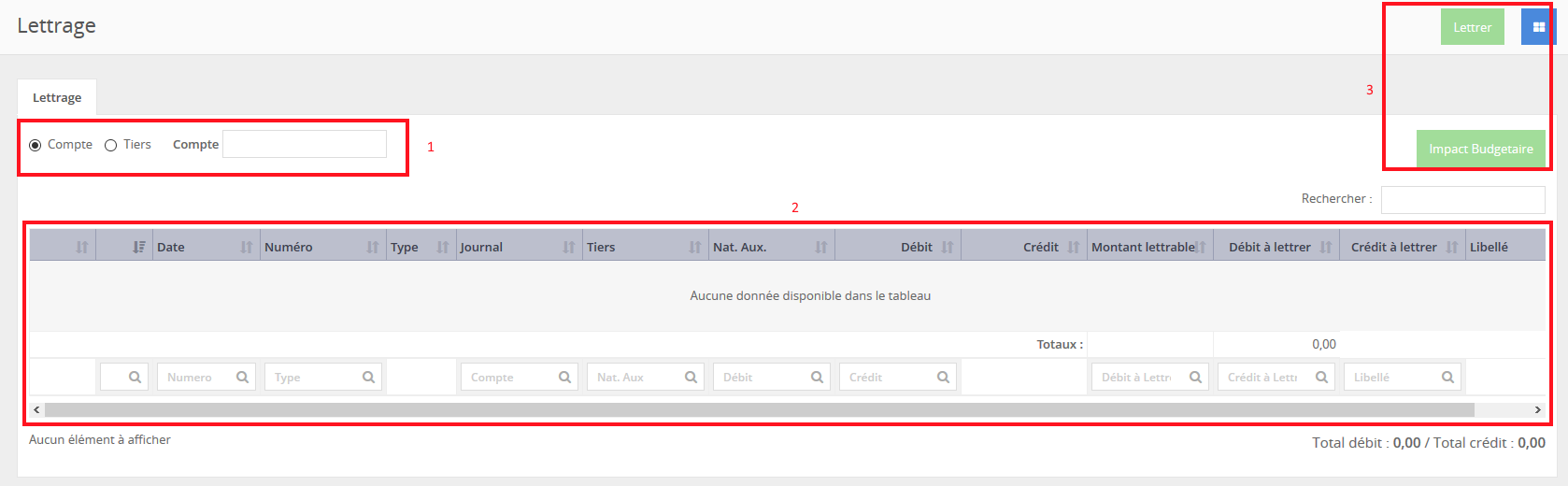 Enfin, lorsque les deux lignes “Débit” et Crédit” sont équilibrées, il est possible de cliquer sur le bouton vert “Lettrer”.