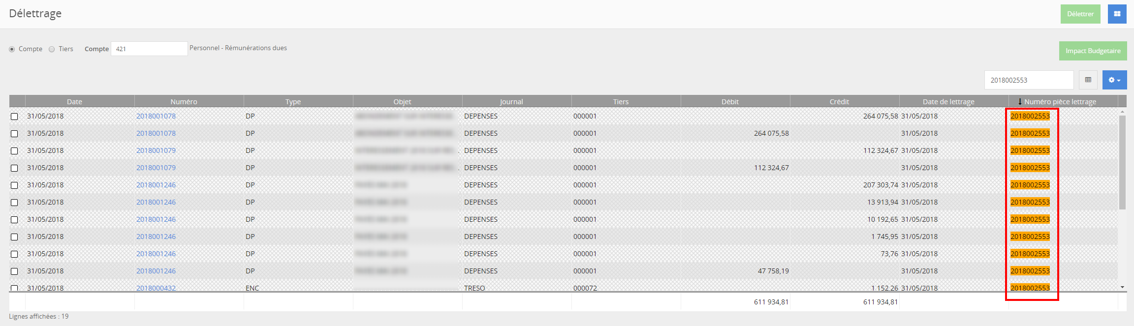 - Toujours le 31/05, l’OD 647 est lettrée manuellement par la pièce de lettrage 2576.